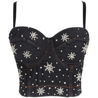 Rhinestone Denim Corset Cami Top - DENIM BLUE-WHITE DIAMOND / 34B