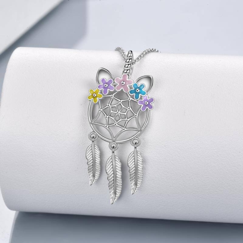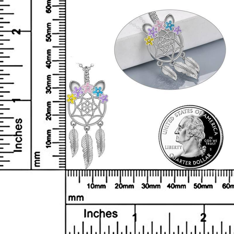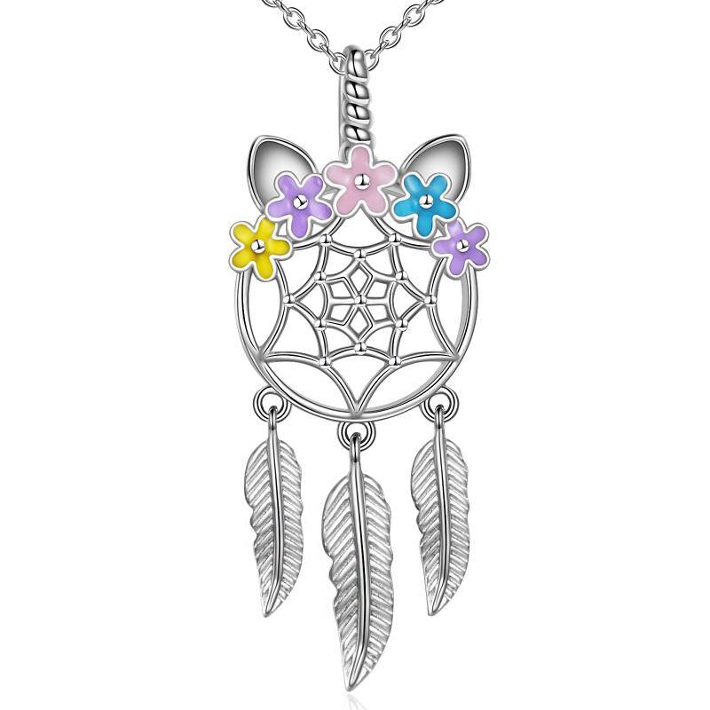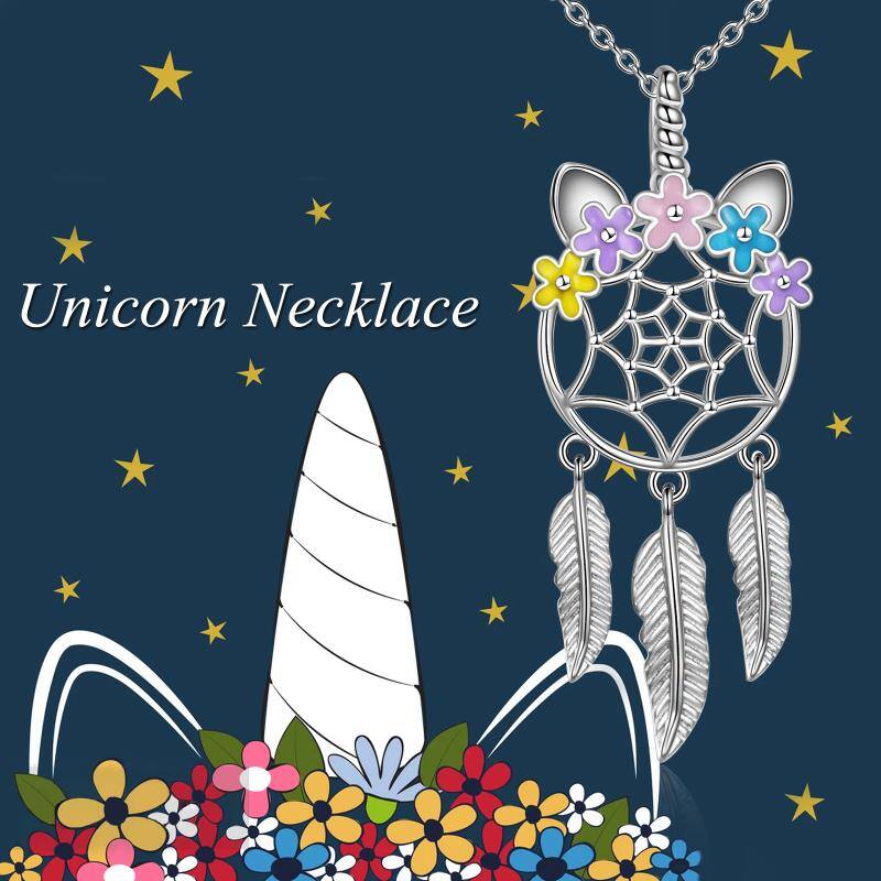 Unicorn Dream Catcher Feather Necklace Gifts for Girls Women Sterling Silver - silver / 3715mm