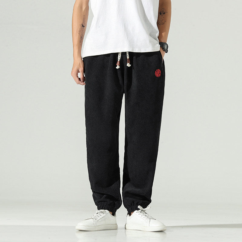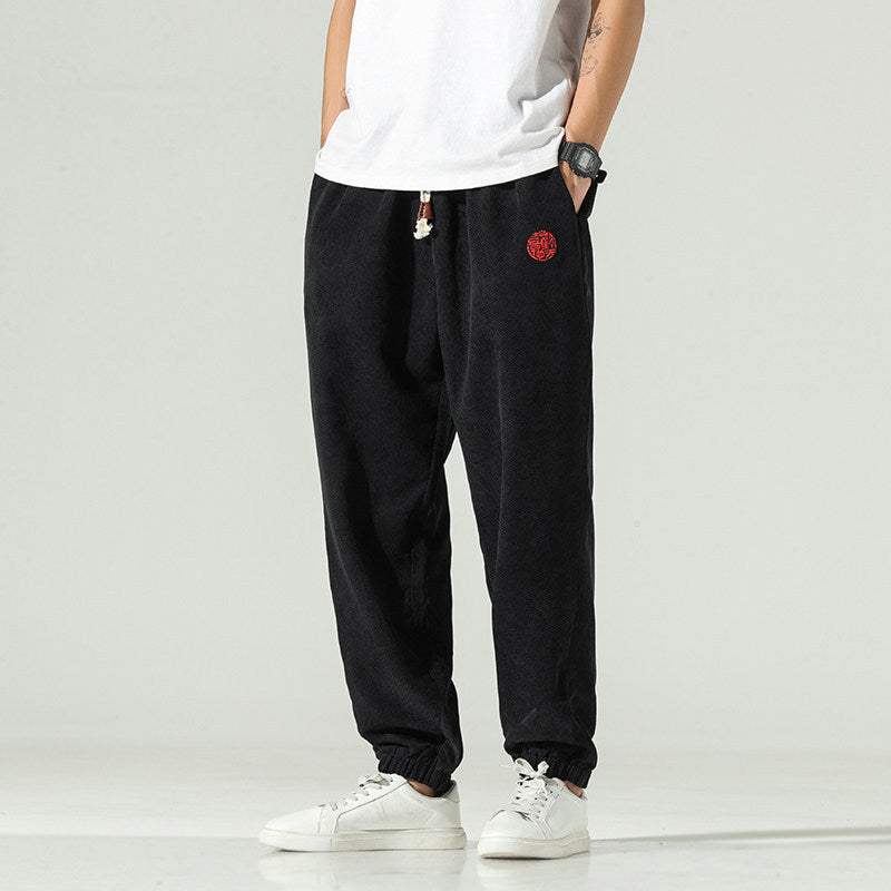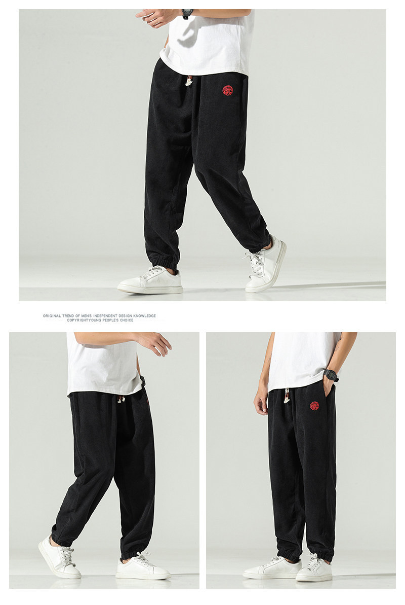 New SpringSummer Chinese-style Embroidered Mens Harem Pants - Black / 2XL