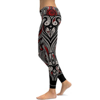 Red Rose Black Mandala Weave Yoga Workout Leggings Sale