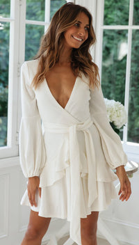 Ruffled pleated dress - White / M