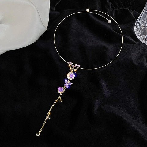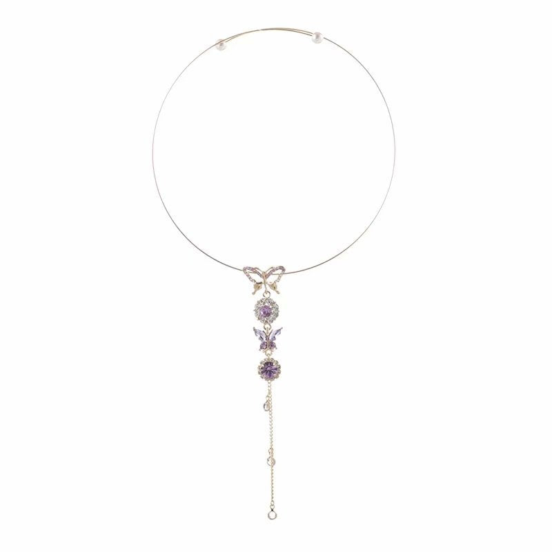 retro amethyst butterfly collar Crystal butterfly necklace - Collar