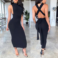 Solid color halter one step dress - Black / M