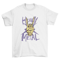 Cool t-shirt design featuring a skeleton hand with the caption "Heavy metal".