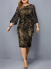 Ladies Plus Sized Sequin Dress-Classy and elegant - Golden / M