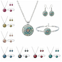 Mandala Flower Religious Time Gem Necklace Set - 5style